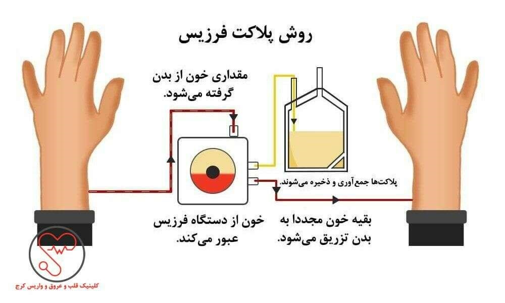 روش پلاکت فرزیس یک درمان فوری پلاکت خون بالا است که معمولا فقط برای افرادی که تعداد پلاکت خون آنها به بالاتر از ۱ میلیون رسیده و در معرض خطر شدید لختههای خونی و سکته و آمبولی قرار دارند، استفاده میشود. در روش پلاکت فرزیس مقدار محدودی خون بهتدریج از رگهای بازو گرفته میشود و وارد دستگاه میشود. بعد پلاکتها توسط دستگاه جدا میشوند و خون تصفیهشده دوباره به بدن برمیگردد.